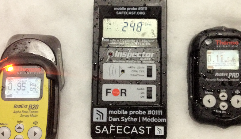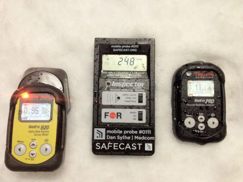 On January 22-23 it snowed heavily in Tokyo. To see if it affects radiation measurements I ran out with a few geiger counters to see if I could detect any change.